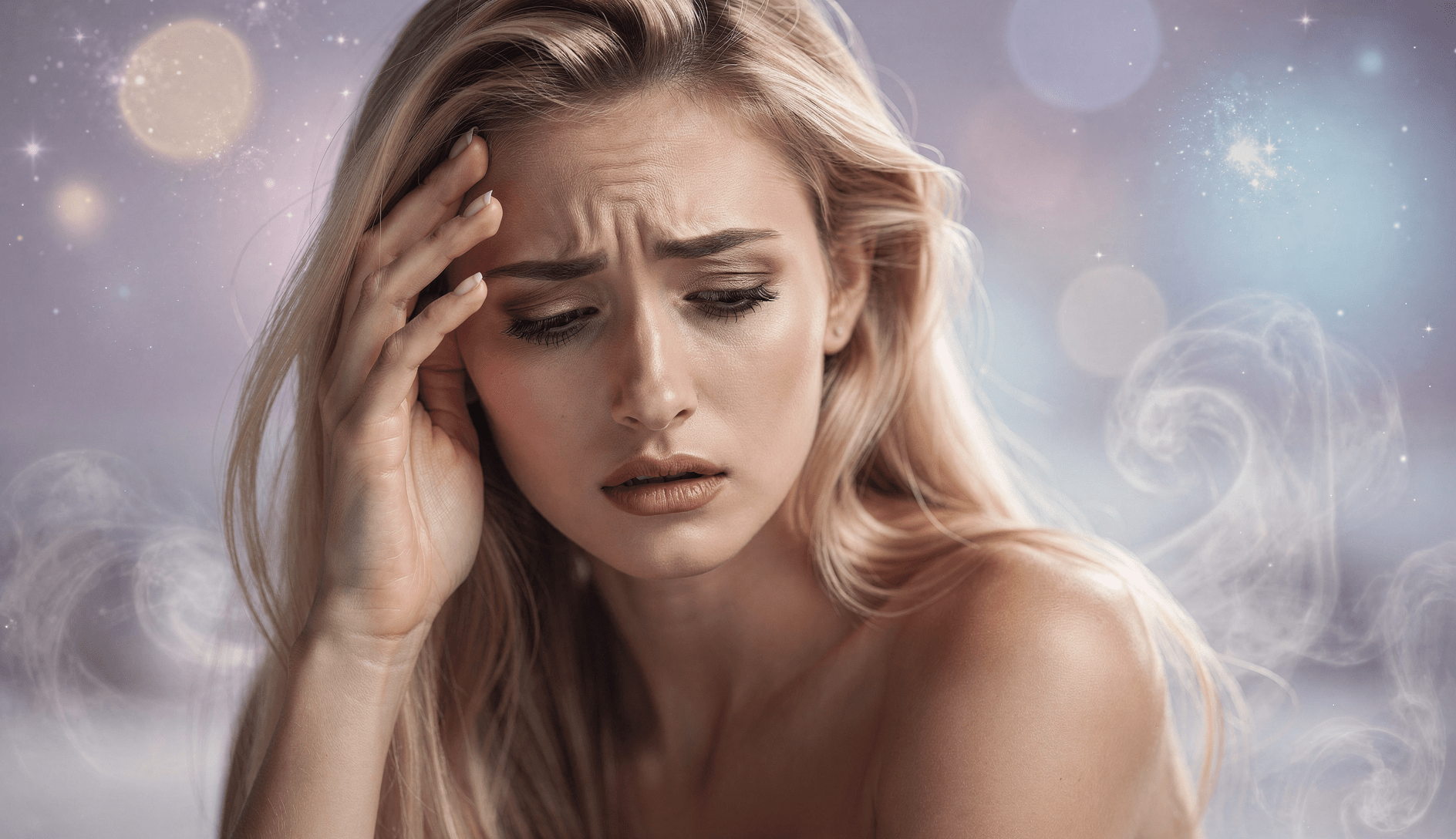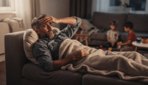Dostavuje se silná únava, pocit vyčerpání a nedostatku energie, poruchy spánku (spavost nebo naopak nespavost), bolesti svalů, bolesti kloubů, bolesti zad a ztuhlost celého těla. Časté jsou také poruchy paměti, poruchy soustředění a koncentrace, mravenčení nebo brnění prstů, deprese, úzkost a emoční labilita.
